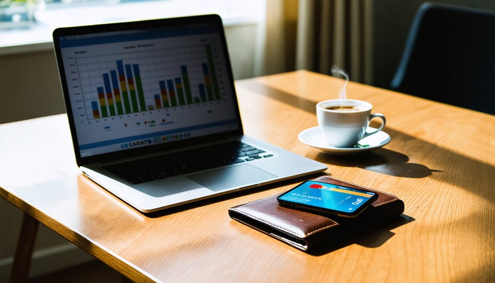 While tracking credit card spending may seem a mere exercise in monitoring expenses, it substantially contributes to spending reduction strategies. Increased financial awareness through real-time spending visibility has been associated with a notable 5.8% reduction in overall expenses. Consumers who actively track their spending often pay off balances monthly, reflecting a change in behavior that promotes budget optimization. Additionally, strategic payment timing can enhance credit utilization metrics, helping consumers maintain healthier credit scores. As technology enables automated alerts and perspectives, individuals are enabled to identify and adjust problematic spending patterns. Ultimately, these tracking mechanisms promote a sense of community by encouraging responsible financial habits and shared learning among peers, reinforcing the importance of accountability in personal finance, and provide a deeper understanding that nourishes a sense of community by encouraging responsible financial habits and shared learning among peers, reinforcing the importance of accountability in personal finance. Furthermore, credit cards account for approximately 31% of all payment transactions in the United States. This is particularly relevant given the pattern observed that monetary tightening exercises strong dampening effects on consumer spending, highlighting the need for vigilant tracking during economic fluctuations.